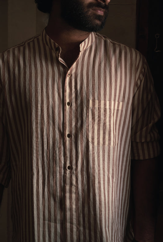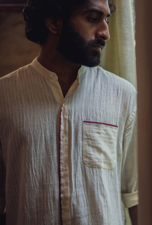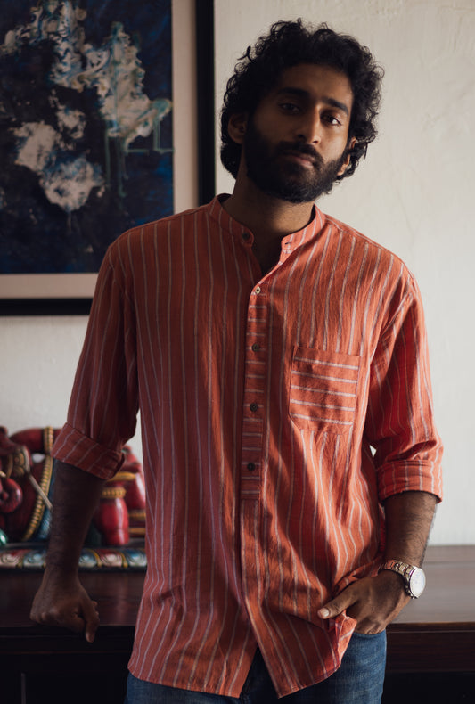 Handwoven Khadi Naro Shirt in Peach